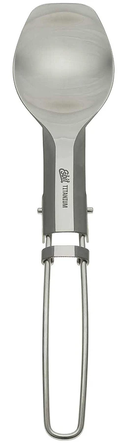 Ein Klapp-Löffel aus Titan. Ultraleicht, geschmacksneutral, mit einem sehr schön ausgeformten Mundteil. Wir haben ja ein recht grosses Sortiment an Titan-Bestecken – diese Teile von Esbit mussten wir aber schon allein wegen der Optik noch zusätzlich ins Programm nehmen…