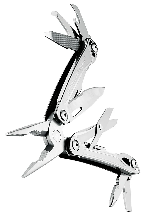 Ein relativ leichtes Multitool in Normal-Grösse für den Einsatz zu Hause oder outdoors. Handlich, mit 14 Werkzeugfunktionen. Die zwei wohl am meisten genutzten Tools Messer und Schere von aussen und mit Einhandfunktion zugänglich, arretierend.
