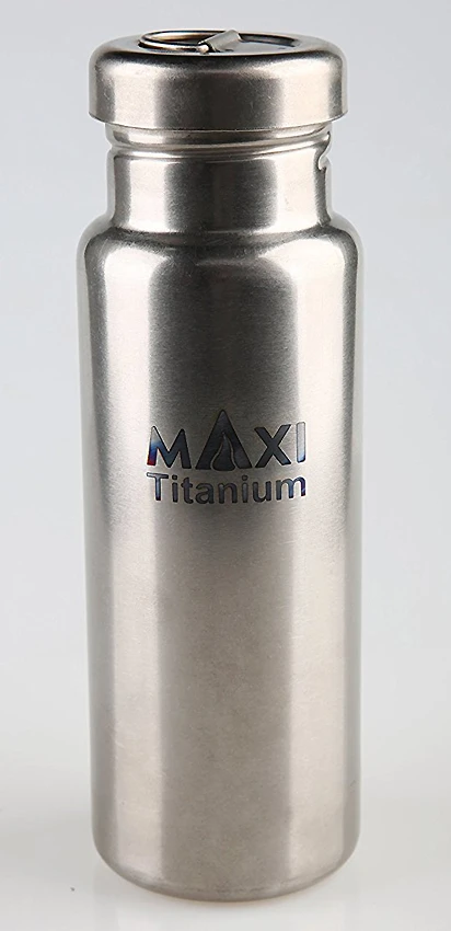 Ultraleichte Wasserflasche aus geschmacksneutralem und stabilem Titan.