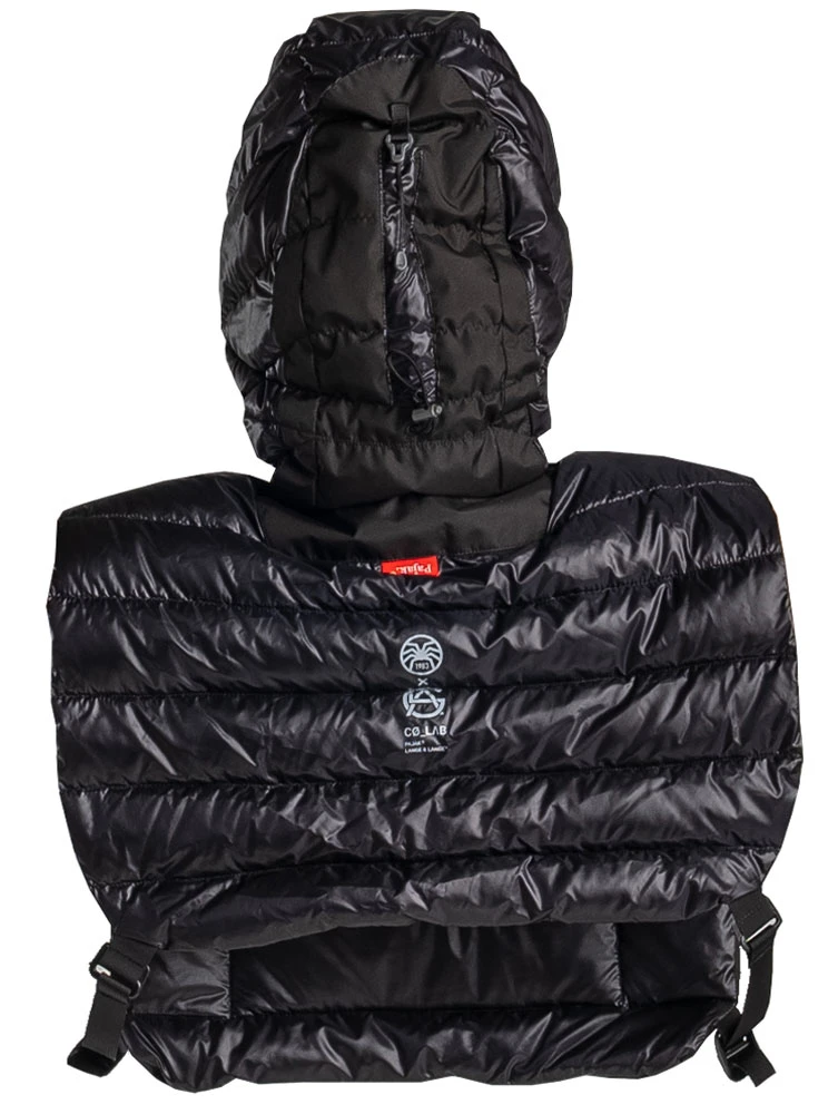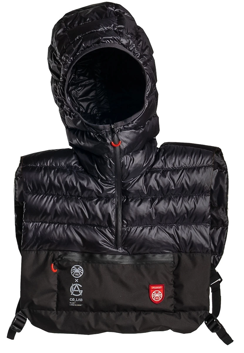 Ein sehr spezielles Ausrüstungsteil – für alle, die bei sehr grosser Kälte eine zusätzliche Isolierung an Kopf, Schultern und oberem Rumpf brauchen, ohne dadurch eingeschränkt oder (weil die bei solchen Temperaturen getragene Bekleidung sowieso schon „bulky“ ist,) noch mehr eingeschränkt zu werden.