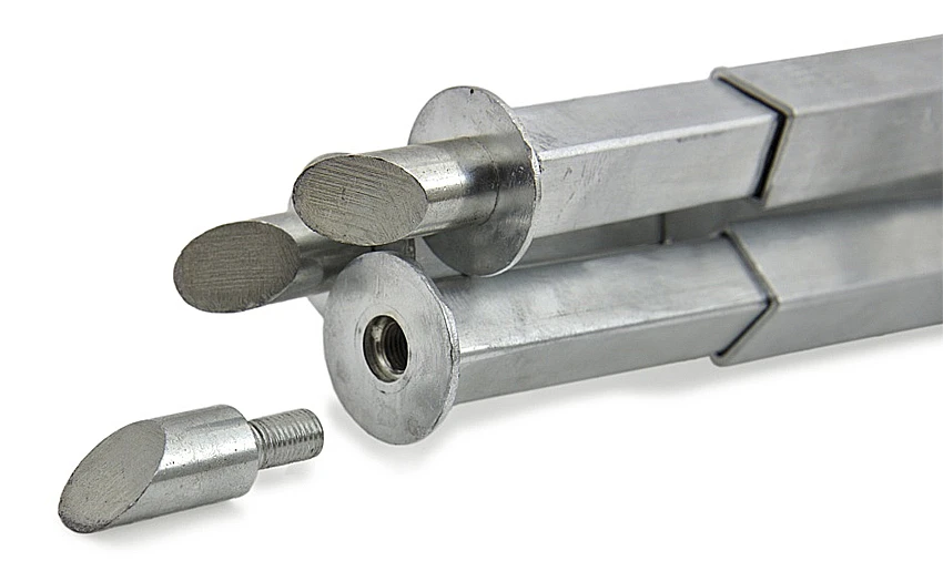 Die abgeschrägten Füße sorgen auf den verschiedensten Böden für einen sicheren Stand des Dreibeins.