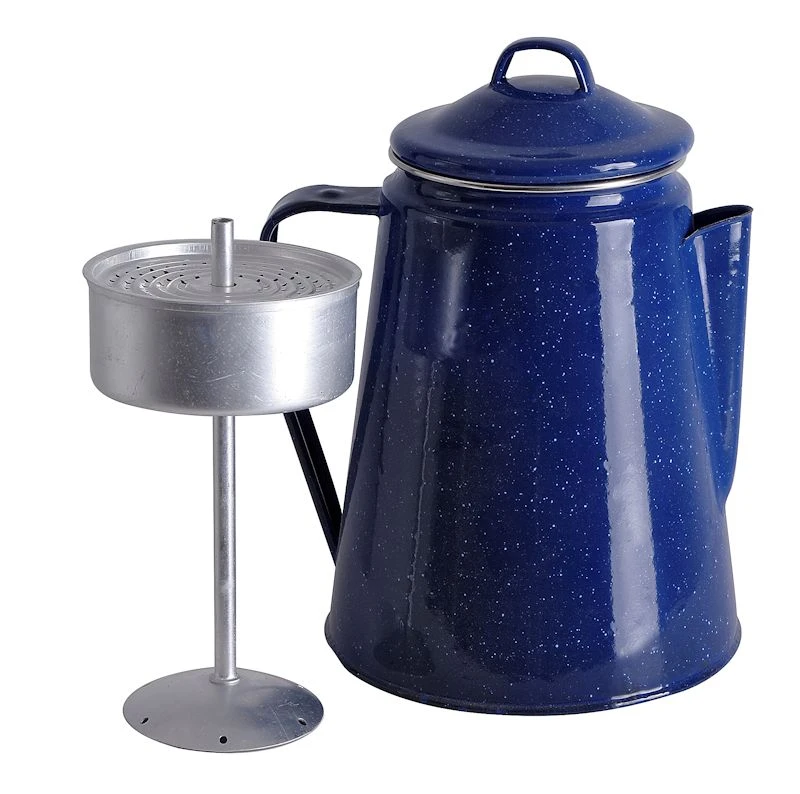 Die 1,8 Liter Kaffekanne hat einen Perkolator-Einsatz. Damit kann der Kaffee geniessermässig gekocht werden, oder ohne den Einsatz kann natürlich auch der klassische Camp-Kaffee direkt in der Kanne gekocht werden.