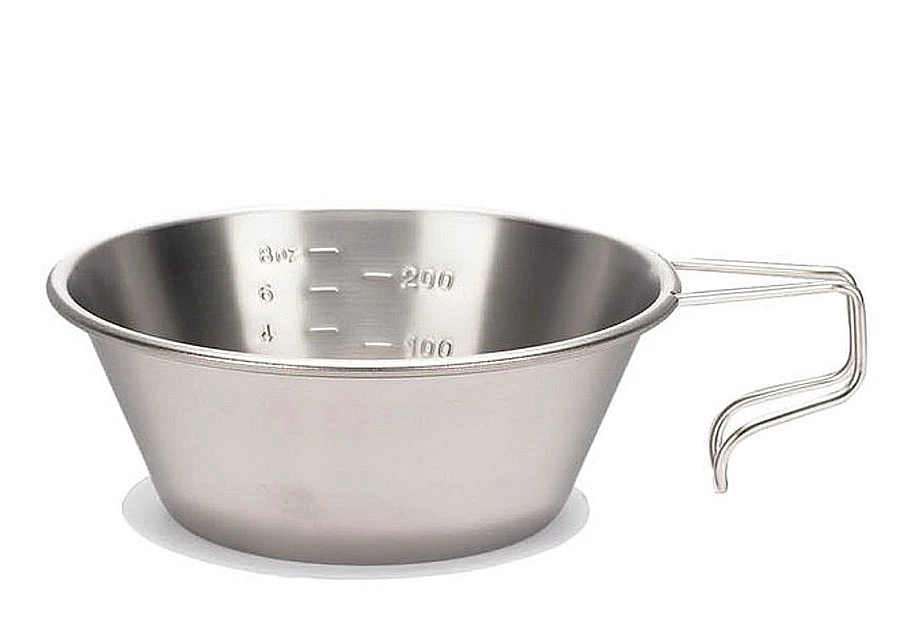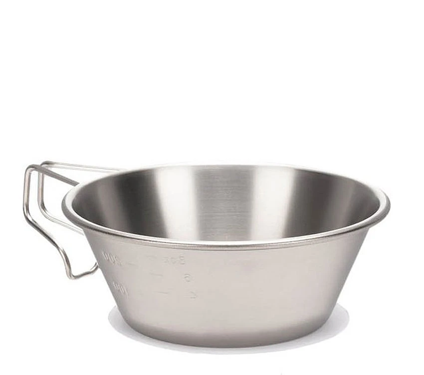 Eine klassische Backpackers Cup im US-Style – vergleichbar zum Berghaferl /mountain cereal cup in Europa. Nur, anders als die europäische Schwester aus Metall (Titanium), um kleine Mengen Wasser für ein Getränk oder eine Portion Ramen (noodles) im Gefäß aufkochen zu können.
