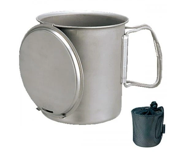 Für alle Minimalisten unter den Ultraleicht-Backpackern: Ultraleichter Titantopf mit eingestanzter Skala und Klappgriffen sowie einem Deckel mit Ablauföffnung.
