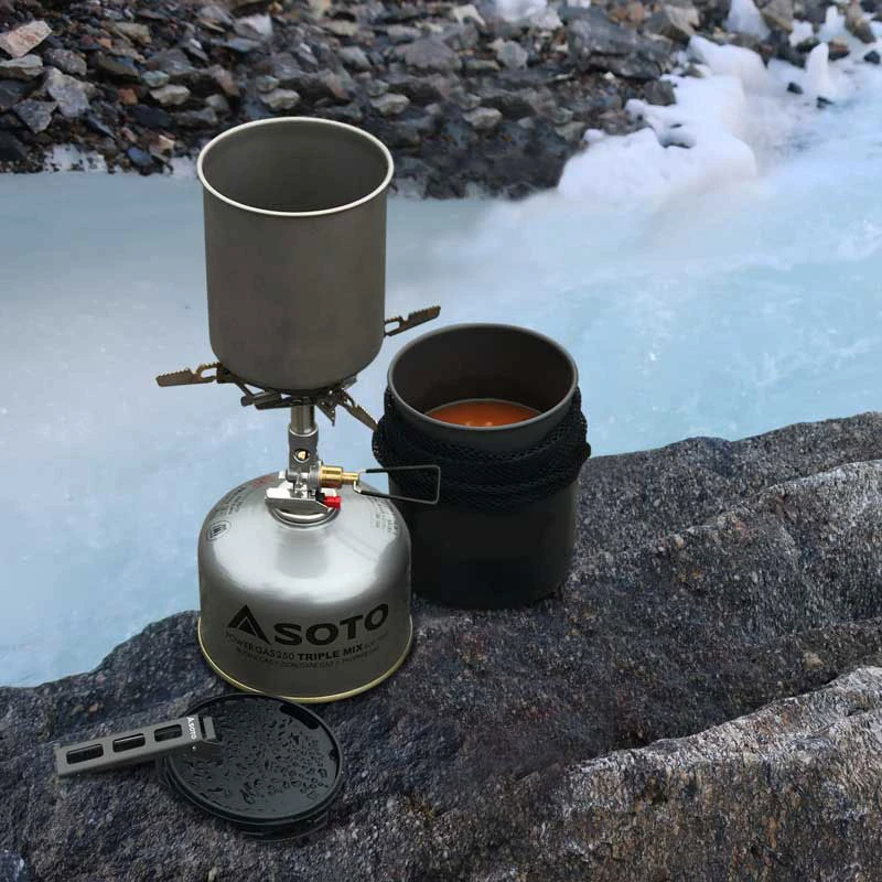 Ein richtig schönes, vielteiliges, minimalistisches (Koch-)Becher-Set, nicht nur für UL-Geher. Das komplette Set „mit-allem“ wiegt 182 g. Das ist die kleinere Ausführung, eben für minimalistische Einzelgeher oder für Kurztouren. Der grössere Bruder mit echtem kleinem Topf ist der Thermostack Combo – sehen Sie dort.