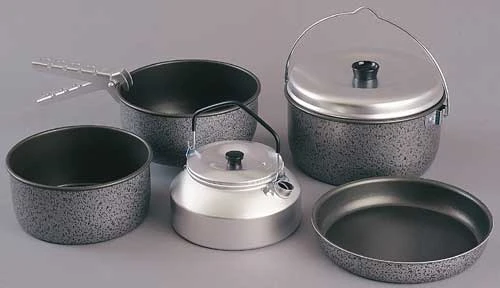 Ein Kochgeschirr für die Familie auf Camping-Urlaub oder eine Gruppe, mit Anspruch an Gourmet-Kochen.