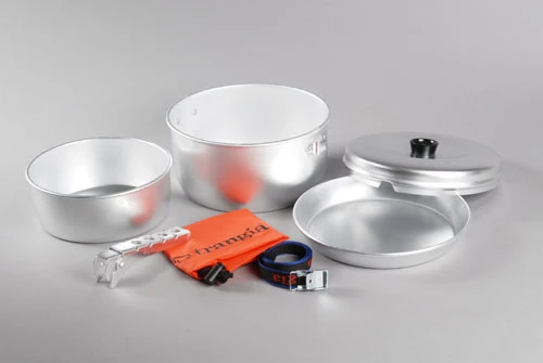 Ein Kochset für den größeren Hunger aus Aluminium. Von Trangia entworfen fürs Militär, hiess deshalb auch „Army Set“ und KSK Kochgeschirr.