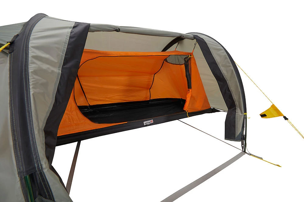 Ein relativ leichtes preisgünstiges Doppeldachzelt für Solo-tourer, in asymmetrischer Tunnel-Bauweise. Eine relativ grosse seitliche Apsis ermöglicht es viel Gepäck geschützt zu lagern oder mit Vorsicht zu kochen. Den trotz Einsatz vernünftiger Materialien guten Preis ermöglicht der Verzicht auf ein richtig niedriges Gewicht.